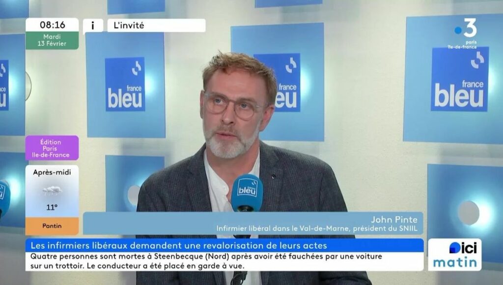 Mardi 13 février 2024 – « John Pinte, Président du Syndicat national des infirmières et infirmiers libéraux (SNIIL), est l’invité de France Bleu Paris. »